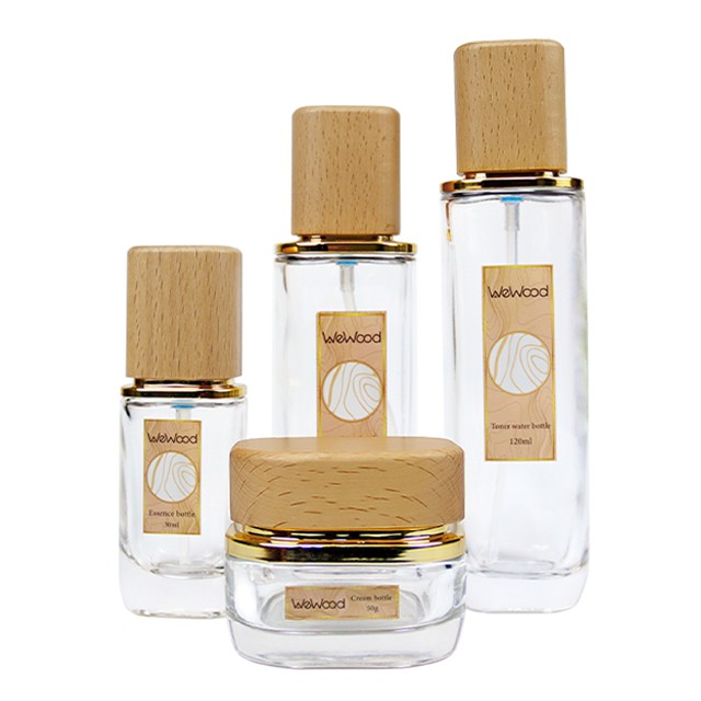 我們的(de)玻璃護膚品瓶與榉木(mù)蓋子(zǐ)系列是(shì)您的♠ ₩£(de)護膚品的(de)理(lǐ)想包材套裝。